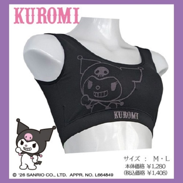 ☆サンリオキャラクターの 成形ショーツです! ☆人気キャラクター、クロミの 可愛いデザイン♪ ☆ストレッチ性に優れた身生地なので、 縦横に良く伸び、フィット感はバツグン! ☆締め付け感が少なく、おうち時間や スポーツ、おやすみ時にぴったりな1枚です! ストレスフリーな履き心地を 是非、体感して下さい♪ ☆別売りのショーツとのセットアップが オススメです♪ ☆カラー ブラック ☆素材構成 ポリエステル55% ナイロン30% ポリウレタン15% ☆バストサイズ M(79~87) L(86~94) ☆原産国 中国 ※撮影状況や光の当たり具合により、色合いが 異なって見える場合がございますが、掲載商品 写真はブラックとなります。