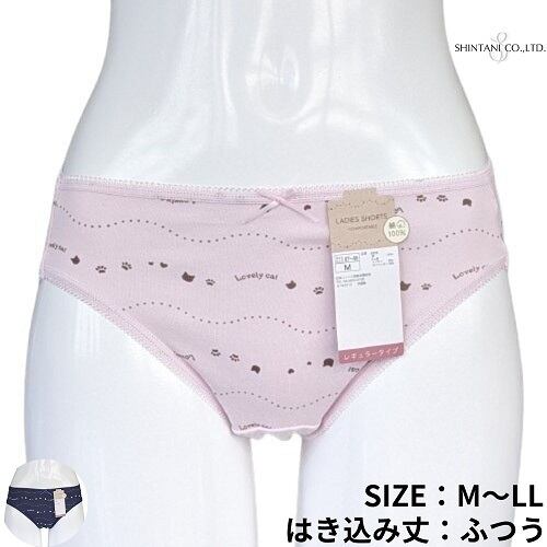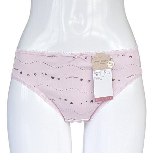 綿100% ネコ足プリント カジュアルショーツ 普通丈
